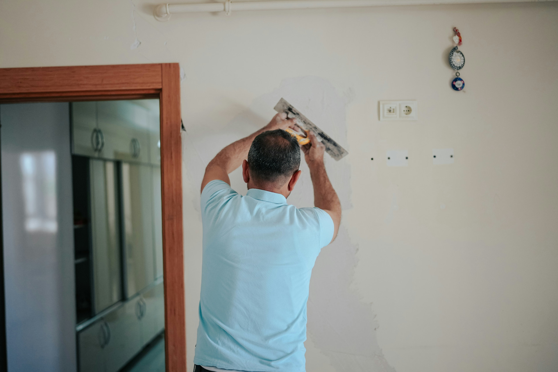 - Sparkle og puss – fyll hull og sprekker med sparkel, og puss lett over når det har tørket.