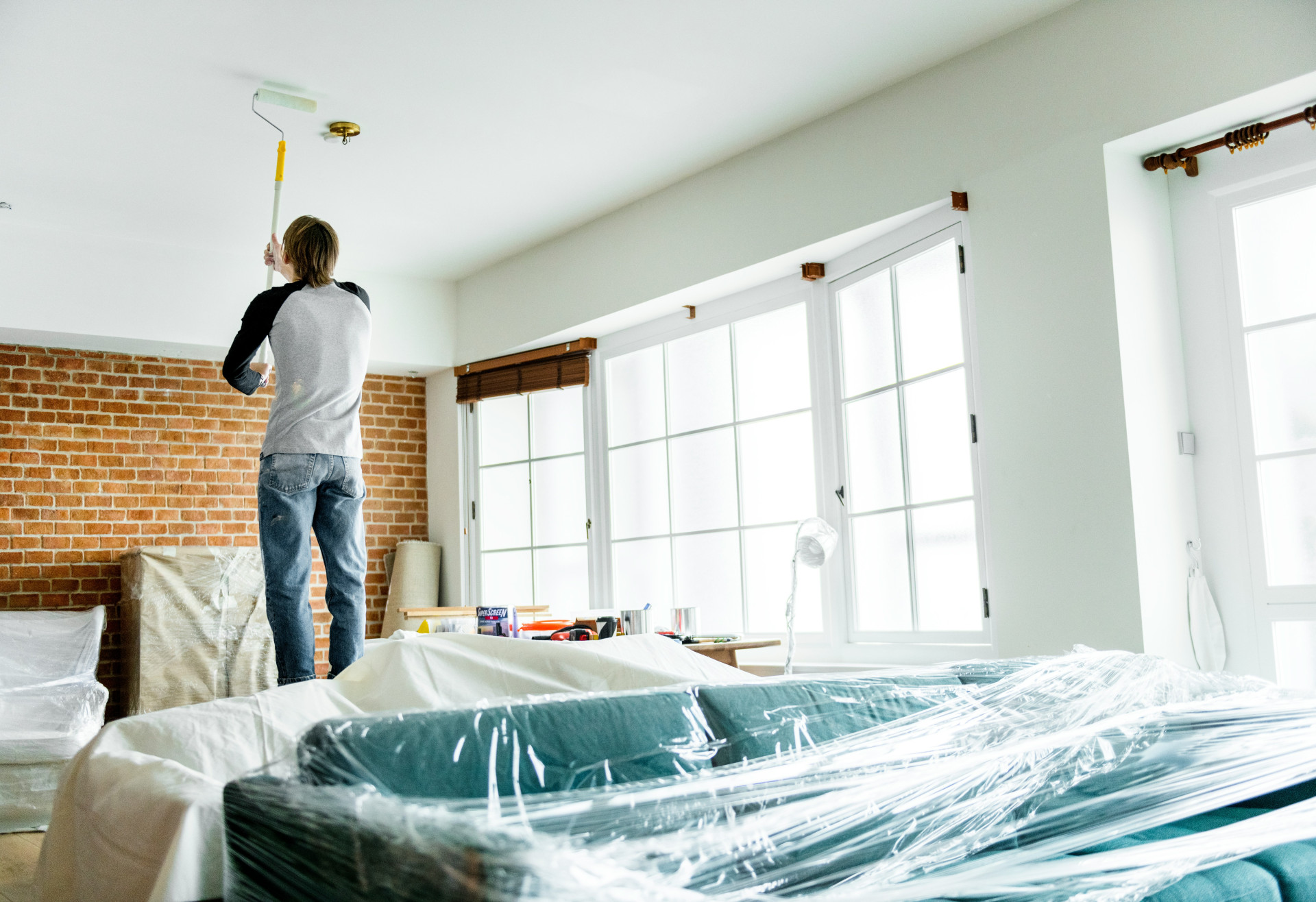 - Forberedelse – dekk til gulv og møbler, vask og eventuelt sparkel ujevnheter.